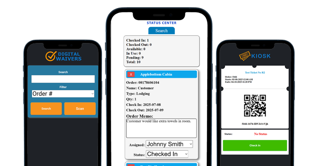 Speed up check-ins with digital waivers and event ticket scanning, while your team stays in sync with real-time trip assignments and cleaning updates in the Status Center.